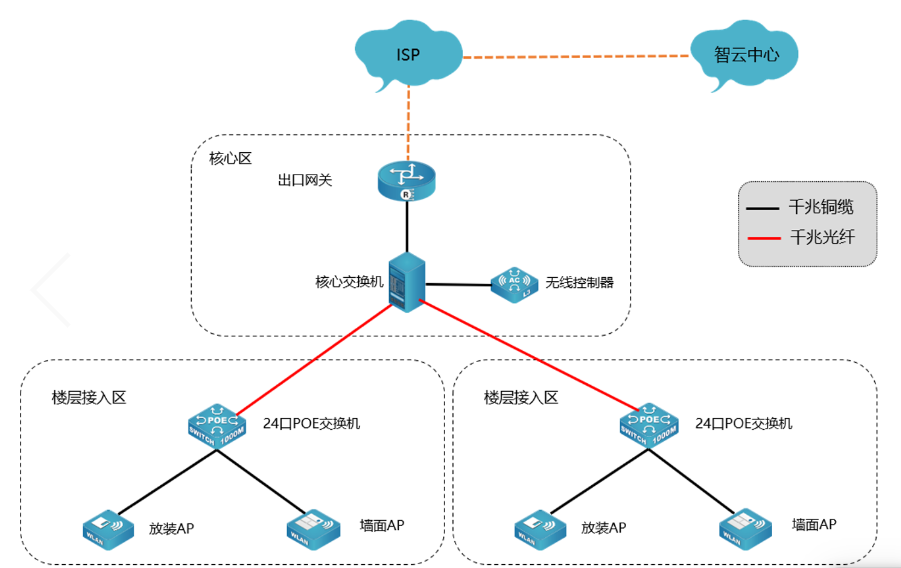 本次建设主要以无线覆盖和微信认证为主要目标节点,随着现代化酒店的开展,移动终端普及使无线上网成为刚需,如何做到不同场景满足不同无线上网需求是酒店无线建设最关心的焦点: